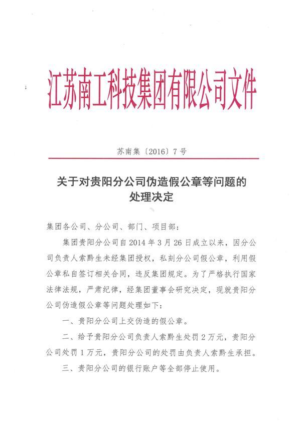 关于对贵阳分公司伪造假公章等问题的处理决定