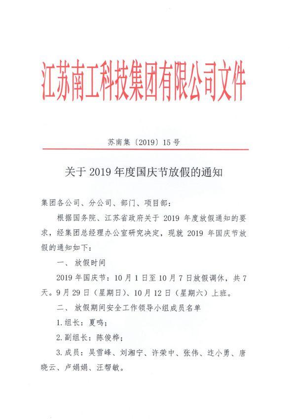 关于2019年度国庆节放假的通知