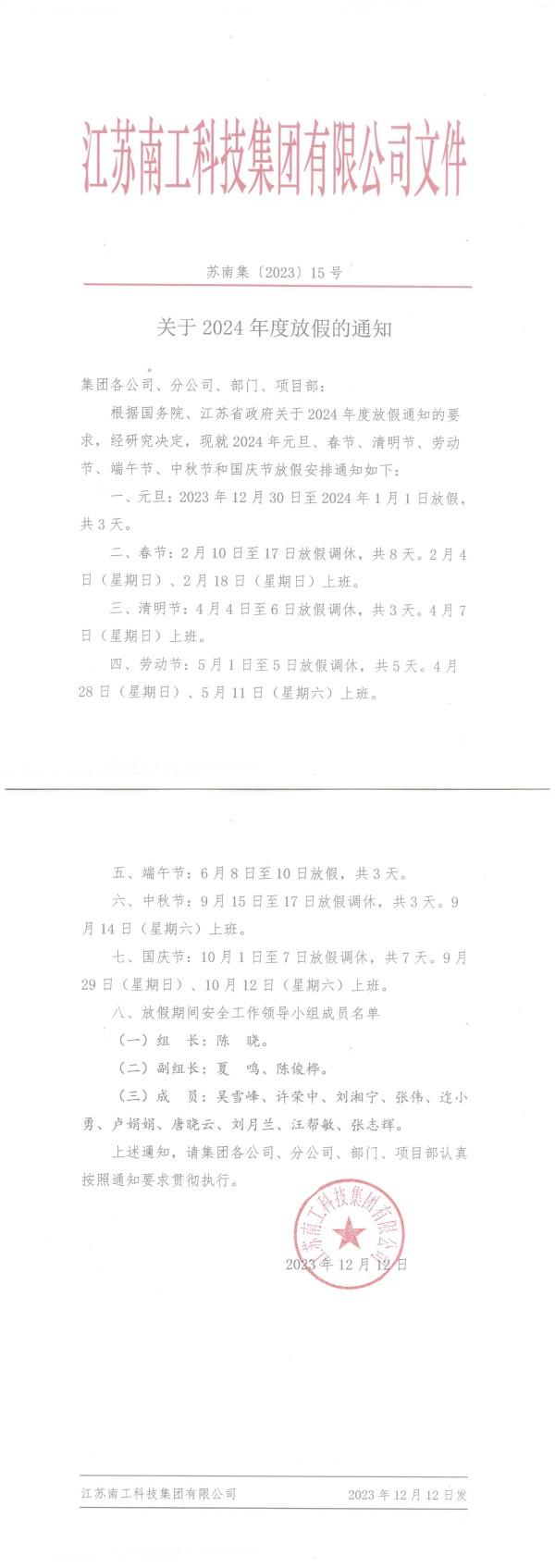 您的位置:集团首页 >> 新闻中心 >> 集团公告 >> 关于2024年度放假的通知