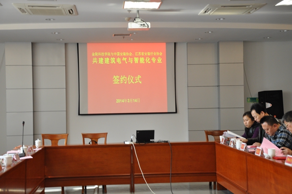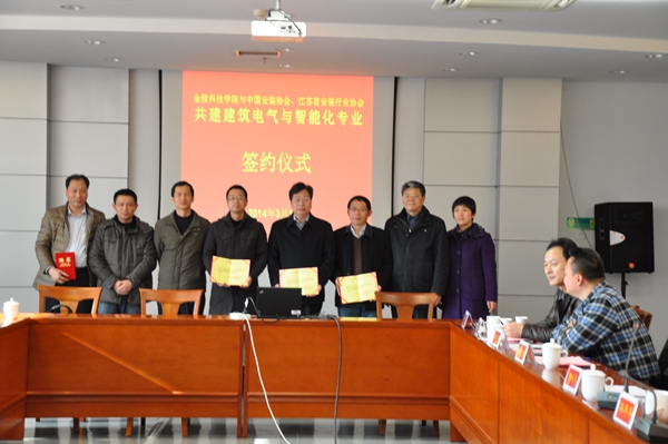 2014年3月14日,金陵科技学院与中国安装协会智能化与消防工程分会、江苏省安装行业协会智能消防电子专业委员会签订了共建“建筑电气与智能化专业”的协议。出席协议签订仪式的有金陵科技学院副校长冯年华、金陵科技学院教务处副处长吴钟鸣、金陵科技学院机电工程学院院长鞠全勇、党总支书记赵士安、副院长周扩建、郑李明、副书记陈建、楼宇系主任牟福元等领导和老师。江苏省安装行业协会会长邹金林;中国安装协会智能化与消防工程分会会长、江苏省行业协会智能消防电子分会会长、江苏金年会科技集团有限公司总经理陈晓;分会秘书长助理余晶等出席了会议。