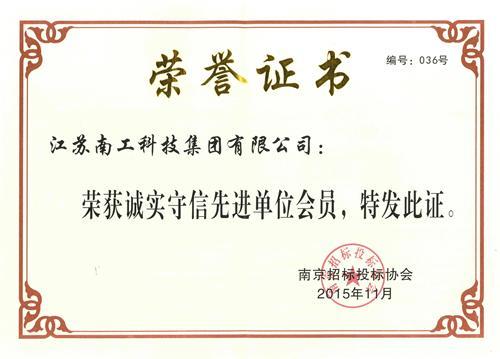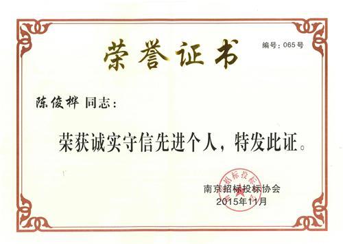2015年12月23日,南京招标投标协会表彰大会在南京市科学会堂召开。集团荣获南京招标投标协会诚实守信先进单位,陈俊桦副总经理荣获先进个人。