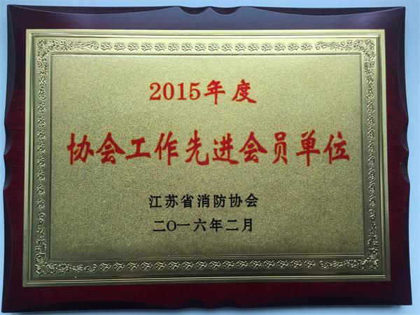 江苏金年会科技集团等9个单位在2015年度协会工作中表现突出,受到了江苏省消防协会的表扬。被表彰为“2015年度协会工作先进会员单位”,并颁发奖匾。