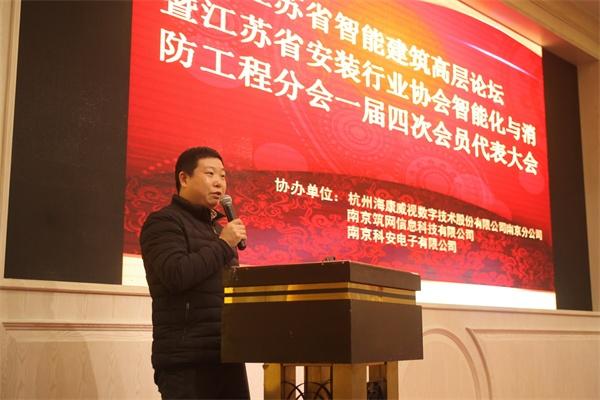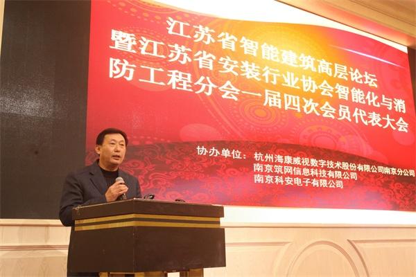 2016年12月23日,江苏省智能建筑高层论坛暨江苏省安装行业协会智能化与消防工程分会一届四次会员代表大会在南京明发国际大酒店隆重召开。参加会议的有江苏省安装行业协会驻会副会长邹金林,江苏省住房和城乡建设厅建筑节能与科研设计处邵劲松科长,中国安装协会副秘书长、江苏省安装行业协会秘书长吴辉,中国安装协会智能化与消防工程分会会长、江苏省安装行业协会副会长、江苏省安装行业协会智能化与消防工程分会会长陈晓,中国安防企业施工维护能力等级评价中心江苏分中心主任祖咏,江苏省自动化学会智慧城市.建筑智能化专业委员会主任何建国,江苏省土木建筑学会建筑电气专业委员会主任管清宝,江苏省智慧城市促进联盟理事长李旻,南京市安全技术防范行业协会秘书长何世先、张亚忠、副秘书长查雪松,南通市智能建筑协会副会长兼秘书长季金发,南通市安全技术防范协会副秘书长季克亮,江苏省安装行业协会智能化与消防工程分会常务副会长吴星红,分会副会长刘昌华、顾永松、范浩松、王向宏、袁勇,分会常务副秘书长席天阳、副秘书长王建明、余晶,分会专家委员会名誉主任叶浩生、专家委员会副主任万里远、张荣生、张庆松,分会专家及会员单位代表等220多人。集团常务副总经理夏鸣、执行董事陈俊桦、副总经理吴雪峰、副总经理许荣中、行政人事部总经理唐晓云、工程管理一部总经理周志刚等参加了会议。