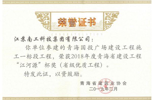 近日,从青海省住建厅传来喜讯,由我司参建的青海国投广场建设工程施工一标段工程(智能化与亮化)荣获2018年度青海省建设工程“江河源”杯奖。