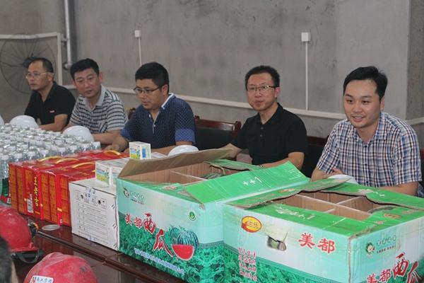 2019年7月29日,在集团执行董事陈俊桦、副总经理吴雪峰带领下,集团安全生产检查及慰问组前往淮安楚州万达机电安装智能化工程项目部,对项目进行了安全生产检查及慰问。并为项目部员工们送去了藿香正气液、西瓜、矿泉水、王老吉等防暑降温用品、药品。