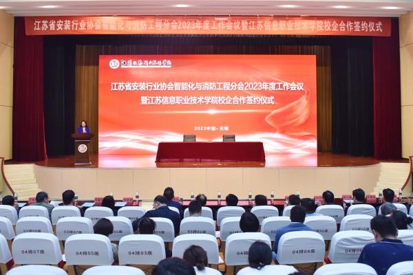 2023年4月21日,分会2023年度工作会议暨江苏信息职业技术学院校企合作签约仪式在江苏信息职业技术学院召开。江苏信息职业技术学院党委书记孔捷、校长张瑜、党委副书记辛春晖。江苏省安装行业协会副会长顾建生、分会会长、江苏金年会科技集团有限公司总经理陈晓,协会监事祖咏,分会常务副会长周蓉蓉等出席了会议。