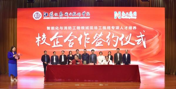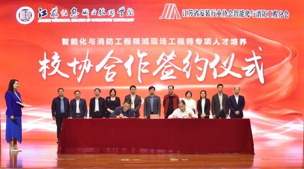 张瑜校长代表江苏信息职业技术学院与江苏省安装行业协会智能化与消防工程分会、江苏金年会科技集团有限公司、南京市消防工程有限公司、南京消防器材股份有限公司等分别签订了校协、校企合作协议。