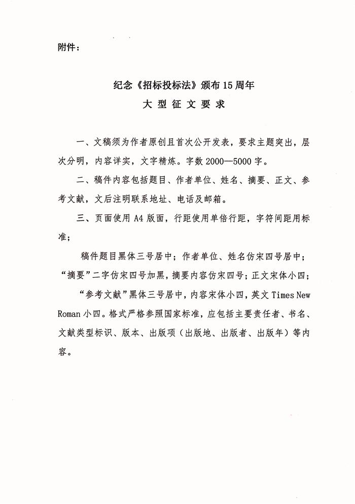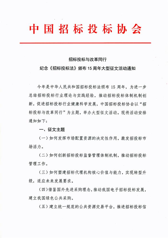 招标投标与改革同行——纪念《招标投标法》颁布15周年大型征文活动通知