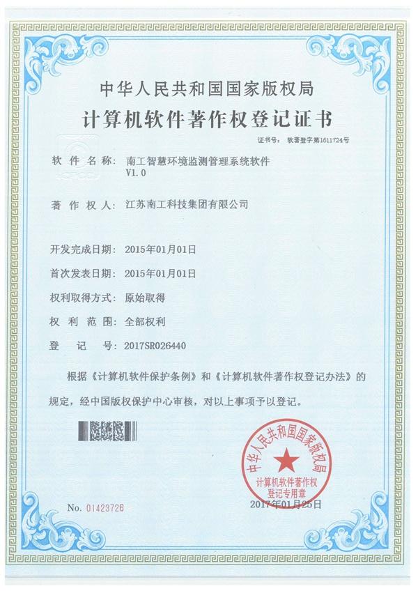 金年会智慧环境监测管理系统软件证书